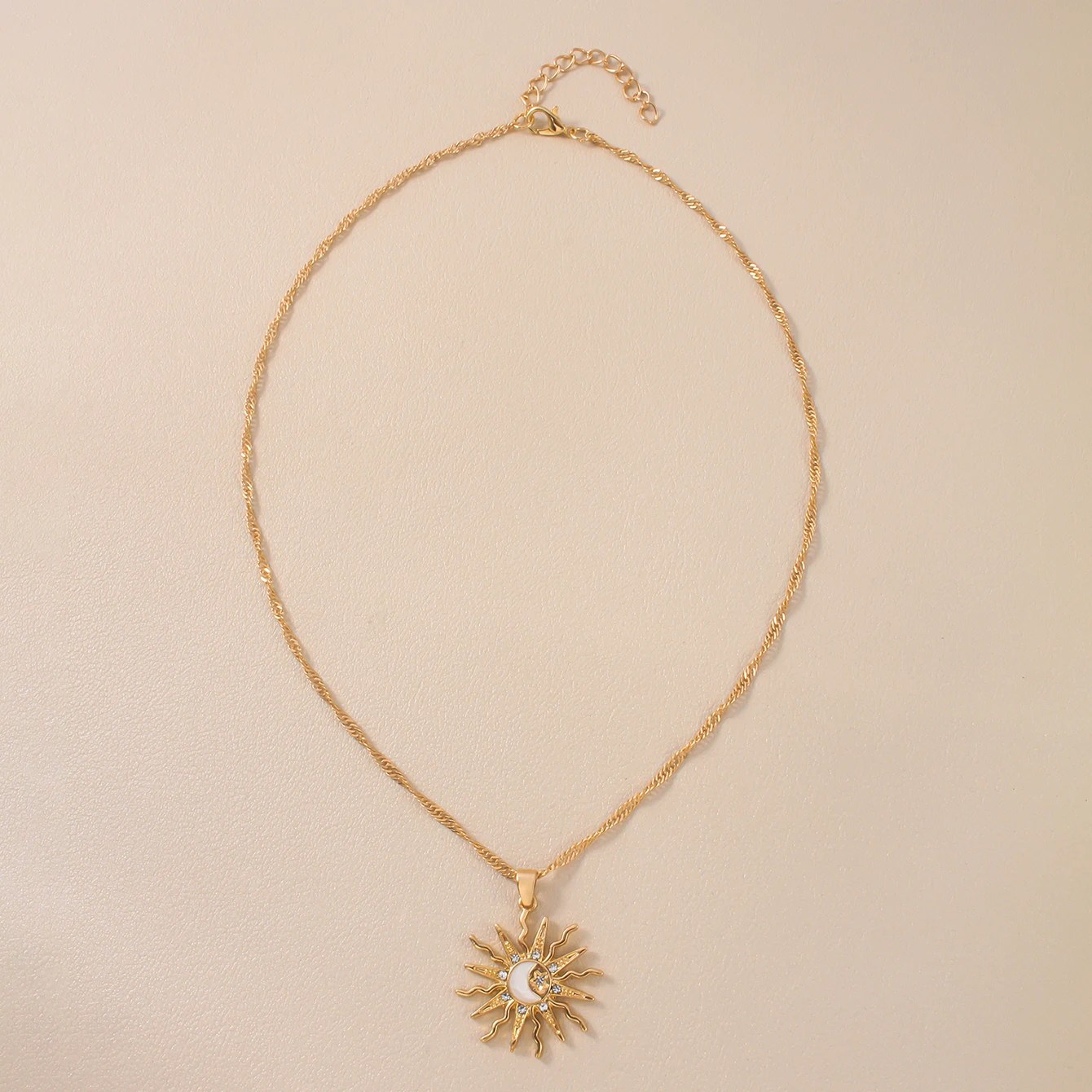 1Pcs Shining Rhinestone Unique Design Sun Star Moon Three In One Pendant Necklace Retro Women’s Daily Versatile Party Jewelry