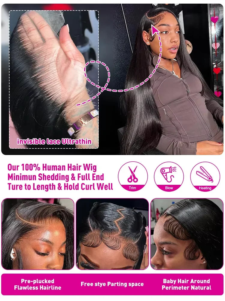 30 Inch Bone Straight HD Transparent Frontal Lace Wigs Brazilian 360 Full Lace Front Wig Glueless 5X5 Human Hair Wig For Women