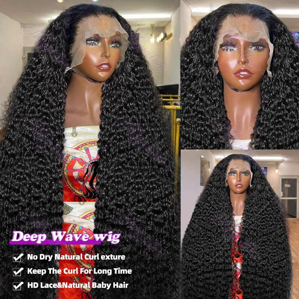 Brazilian 32 Inch Deep Wave 13×4 Lace Front Human Hair Wigs 13×6 HD Lace Frontal Loose Curly 5×5 Lace Closure Wig For Women 200%