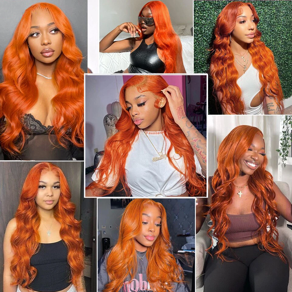 Orange Ginger Lace Front Wig 30 Inch 13×6 Hd Body Wave Human Hair 100% Brazilian 13×4 Lace Frontal Colored Wigs For Black Women