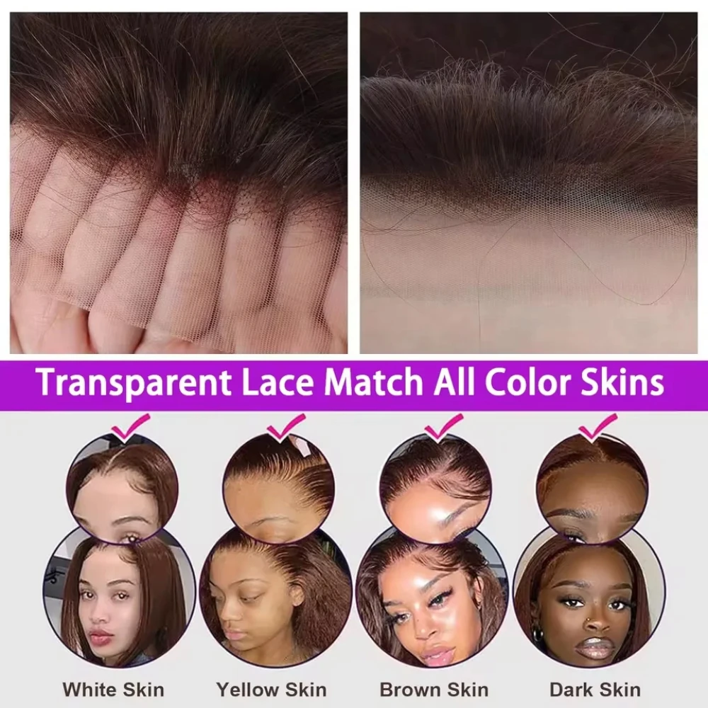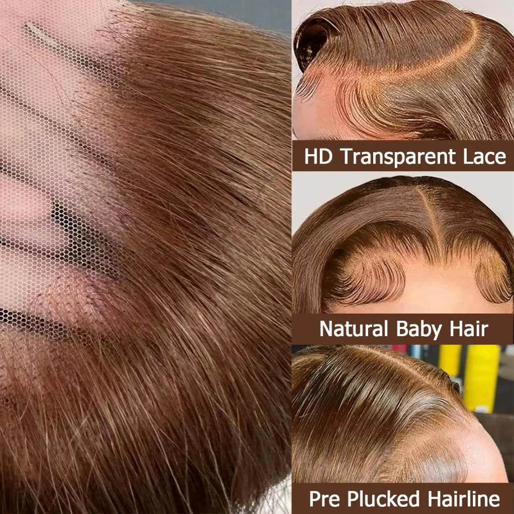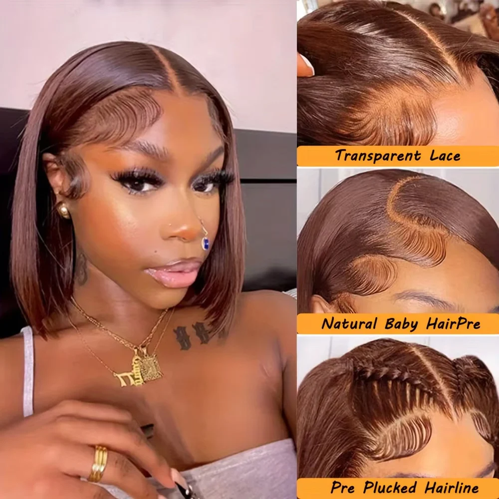 Straight Bob #4 Chocolate Brown Wig 13×4 Transparent HD Lace Frontal Wig 200% Density Remy 100% Human Hair Pre Plucked Women Wig